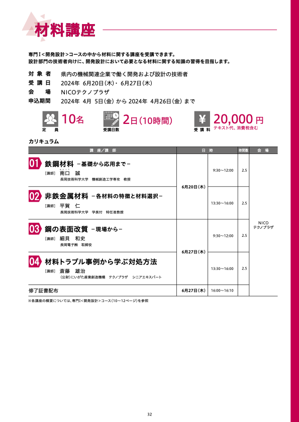 専門Ⅰ<開発設計>コースの中から材料に関連する講座を受講できます。
