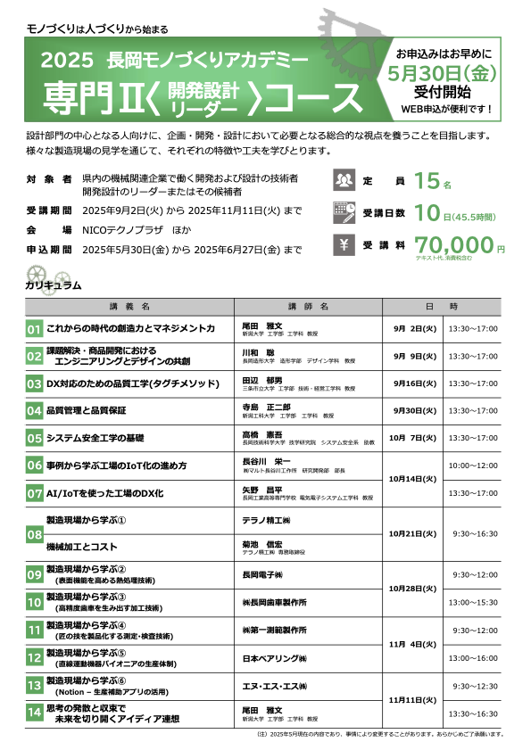 長岡モノづくりアカデミー研修案内2025(PDF:6.1MB)